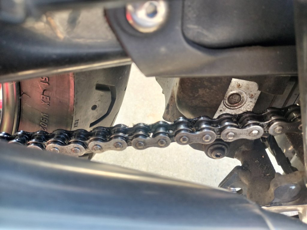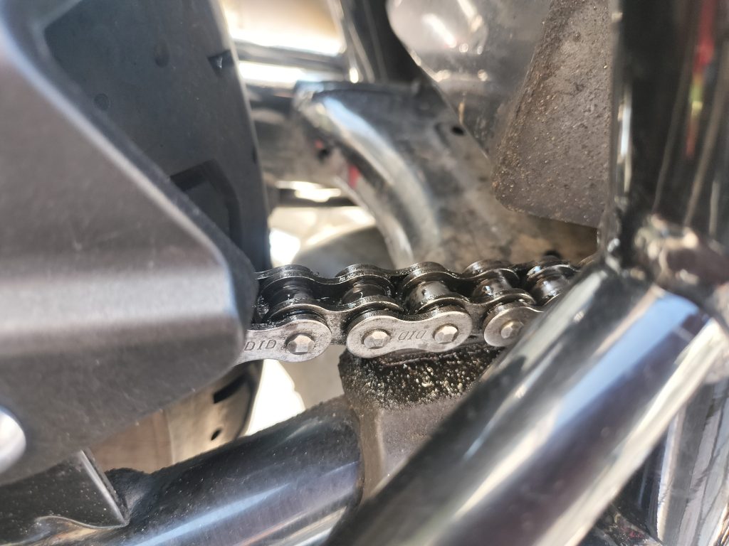 前回のチェーンメンテナンスから約500㎞走行し、ODOMETERが15,000㎞に近くなりました。いつも通りチェーンメンテナンスを行いました。これまでと同じように汚れが付いているようですが、錆は特になさそうです。