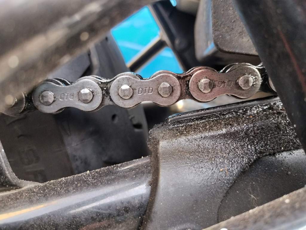 Street TwinのODOMETERが16,500㎞に近くなったので、チェーンメンテナンスを行いました。前回のチェーンメンテナンスから約500㎞を走行しているので、それなりに汚れが見えます。
