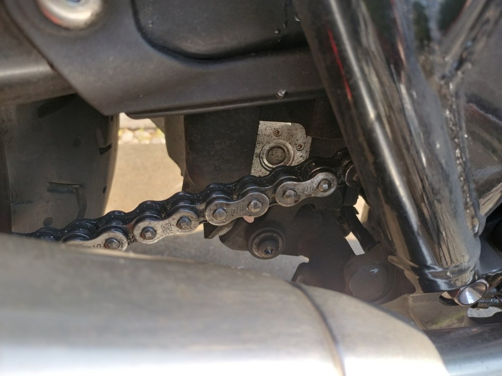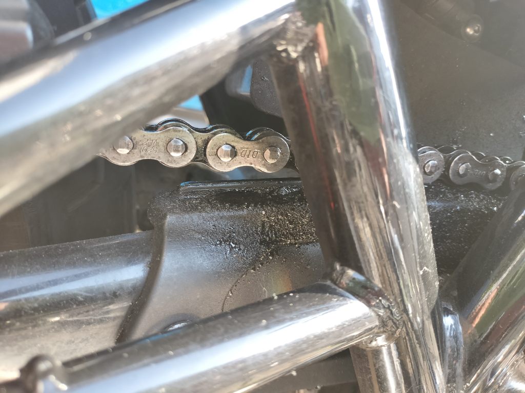 余分なチェーンルブをウエスで拭き取りました。画像では美しく見えないものもありますが、そこそこきれいになったと思います。