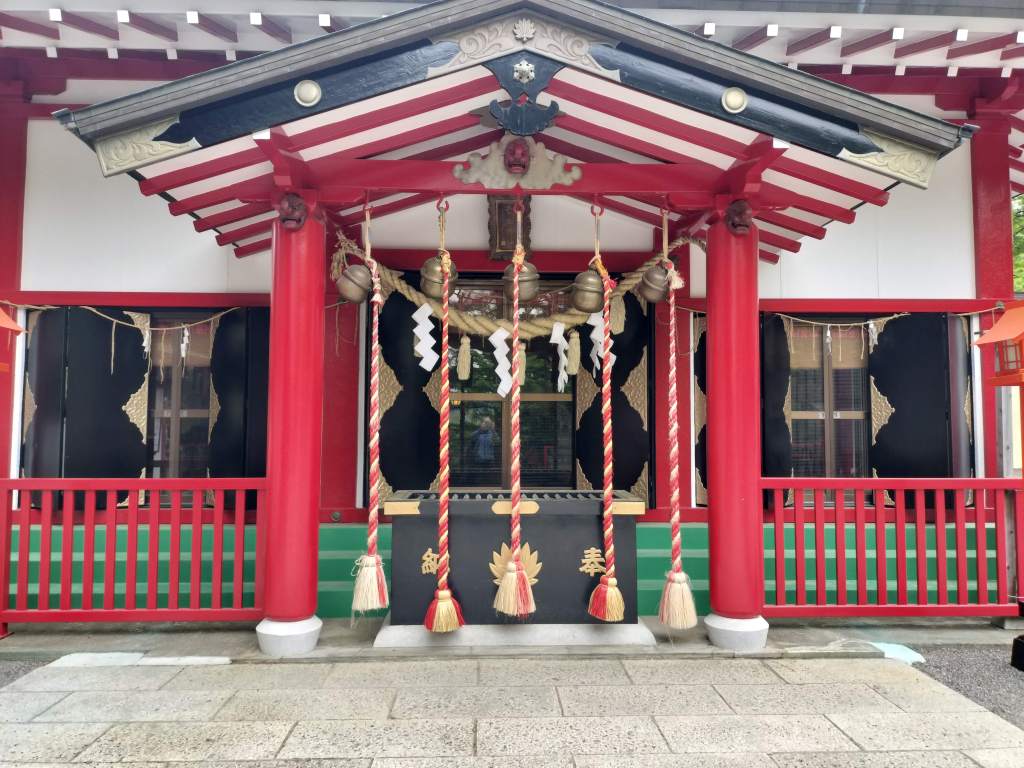 本堂で祈願します。このときはあまり人がいませんでしたが、日によっては多くの人が訪れるのでしょうか、5人が一度に鈴を鳴らすことができるようになっています。