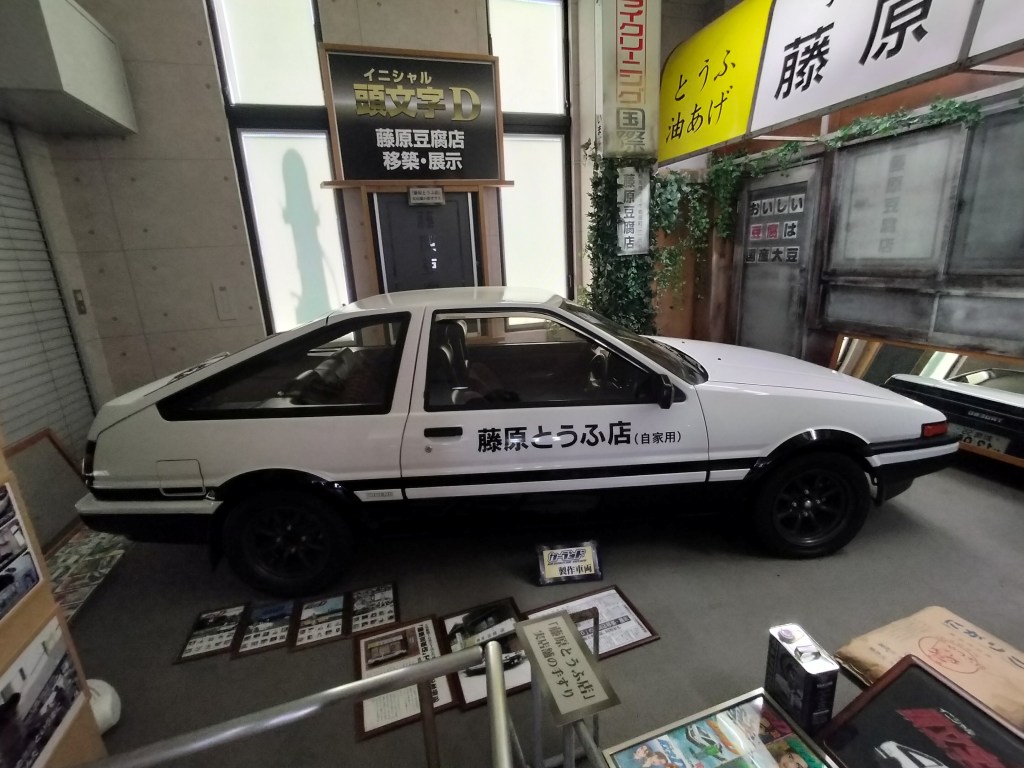 Street Twinとがんばって少し遠くへ行ってみることにしました。行先はアニメ「イニシャルD」の舞台となった「秋名山」です。実際には群馬県の榛名山です。山の麓には「おもちゃと人形自動車博物館」があったので、寄ってみることにしました。「藤原豆腐店」が博物館入口に再現されています。