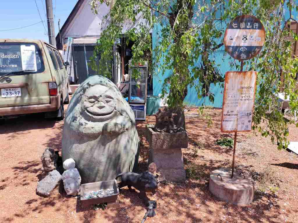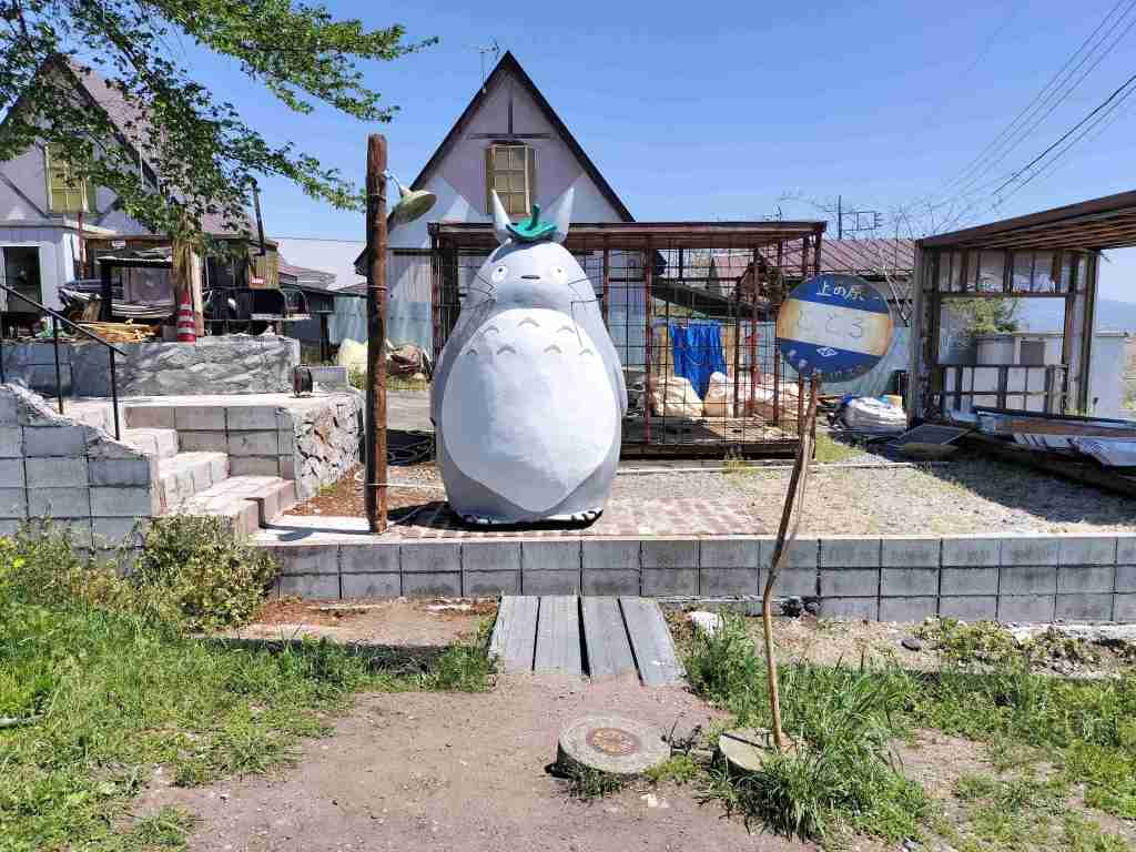 博物館の徒歩圏内には、トトロのバス停や千と千尋の石像があります。ちょっとかわいいですね。バイク用の駐車スペースは見つけられなかったので、自動車用のところに停めました。駐車場が大きいので、自動車の方のご迷惑にはならなかったと思います。秋名のハチロクに会えて、とても満足でした。