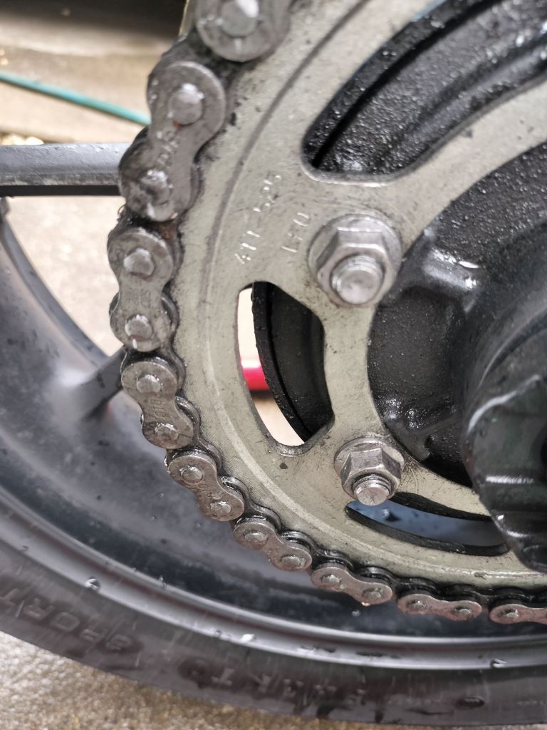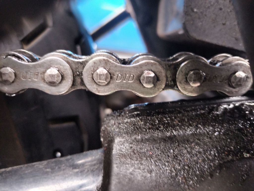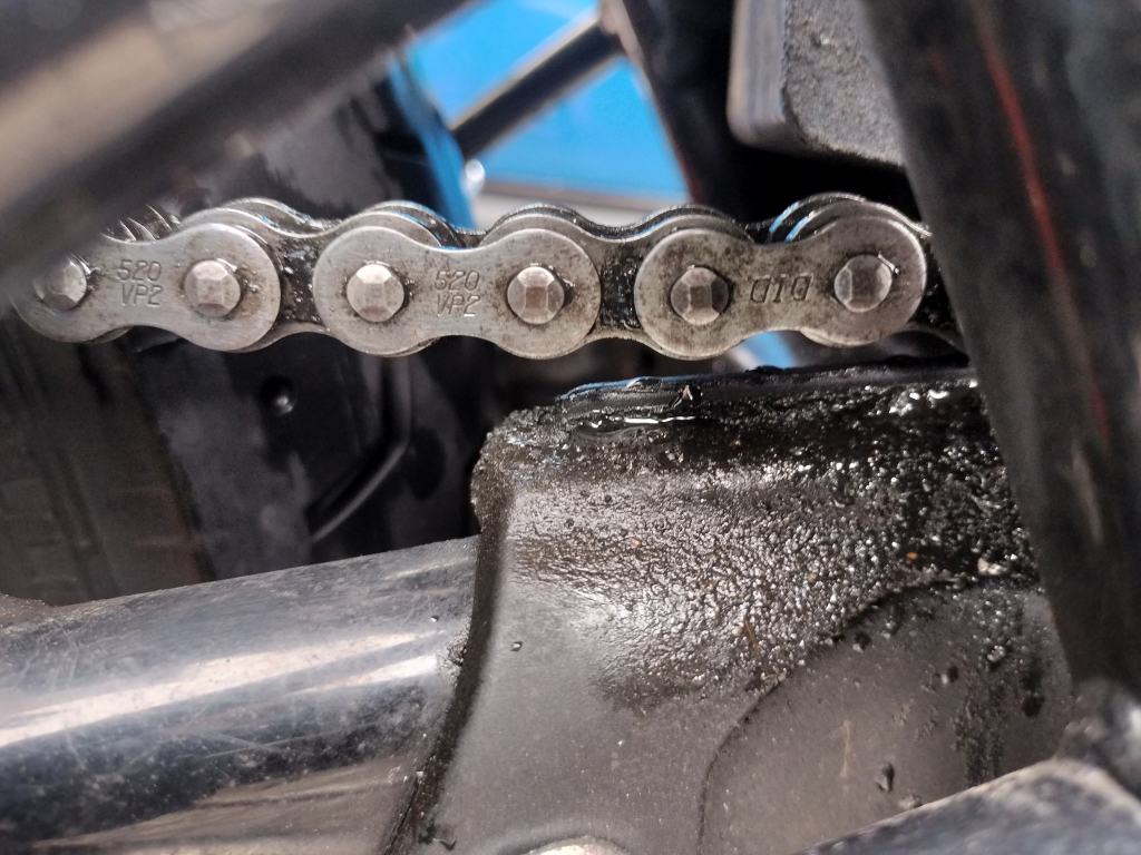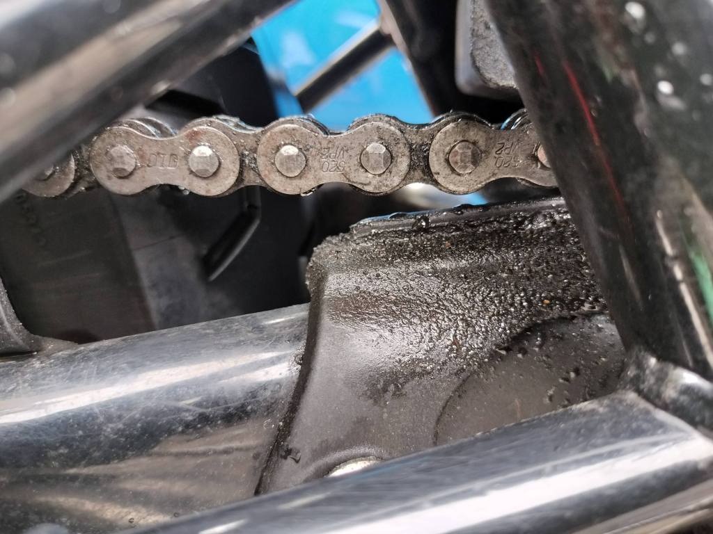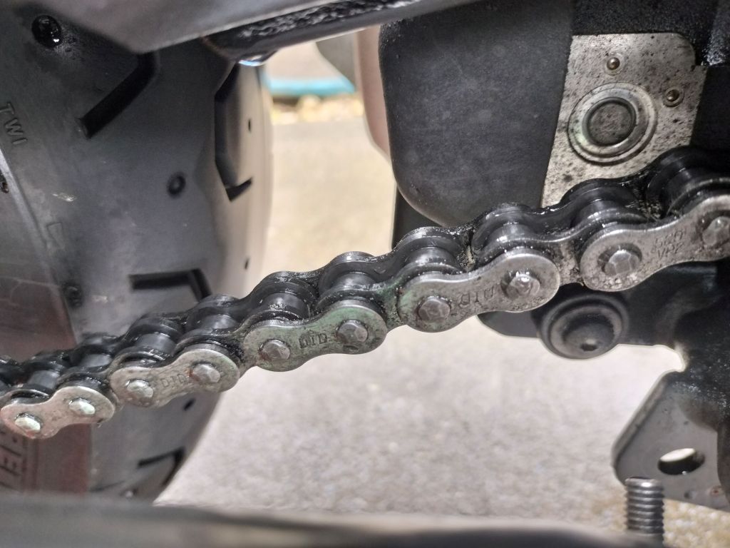 洗車が終わったので、チェーンメンテナンスを行いました。500㎞ほど走行したので、汚れ具合はいつも通りのようです。