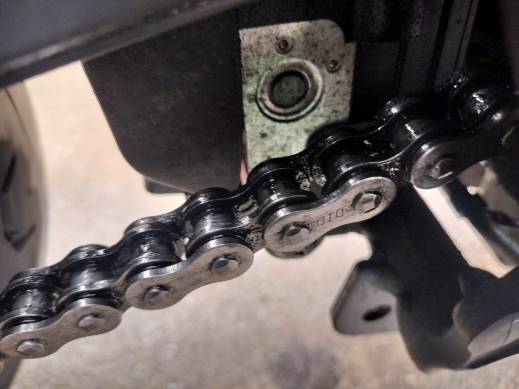 チェーンルブを吹付け、15分待って、余分なルブを拭き取りました。必要にして十分な程度にはメンテナンスできている…と思います。