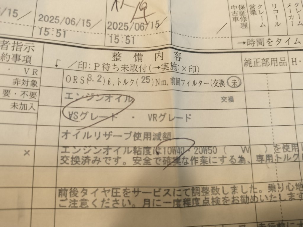 今回の交換でオイルリザーブの残量がほぼなくなったので、1回くらいは自分で好きなオイルに交換するのも悪くないな…と考え中です。いつものサイクルだと12月くらいだと思うので、ゆっくり考えます。