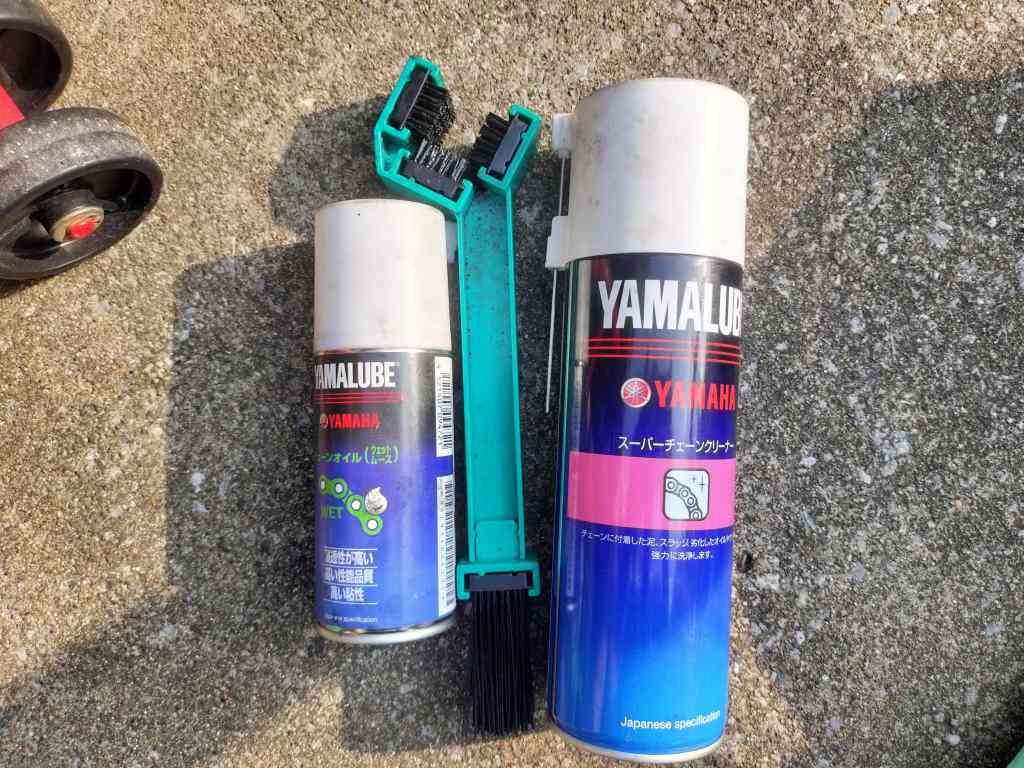 今回もYAMALUBEのチェーンクリーナーとチェーンルブを使いました。チェーンのメンテナンスができたので、ツーリングが楽しみです。