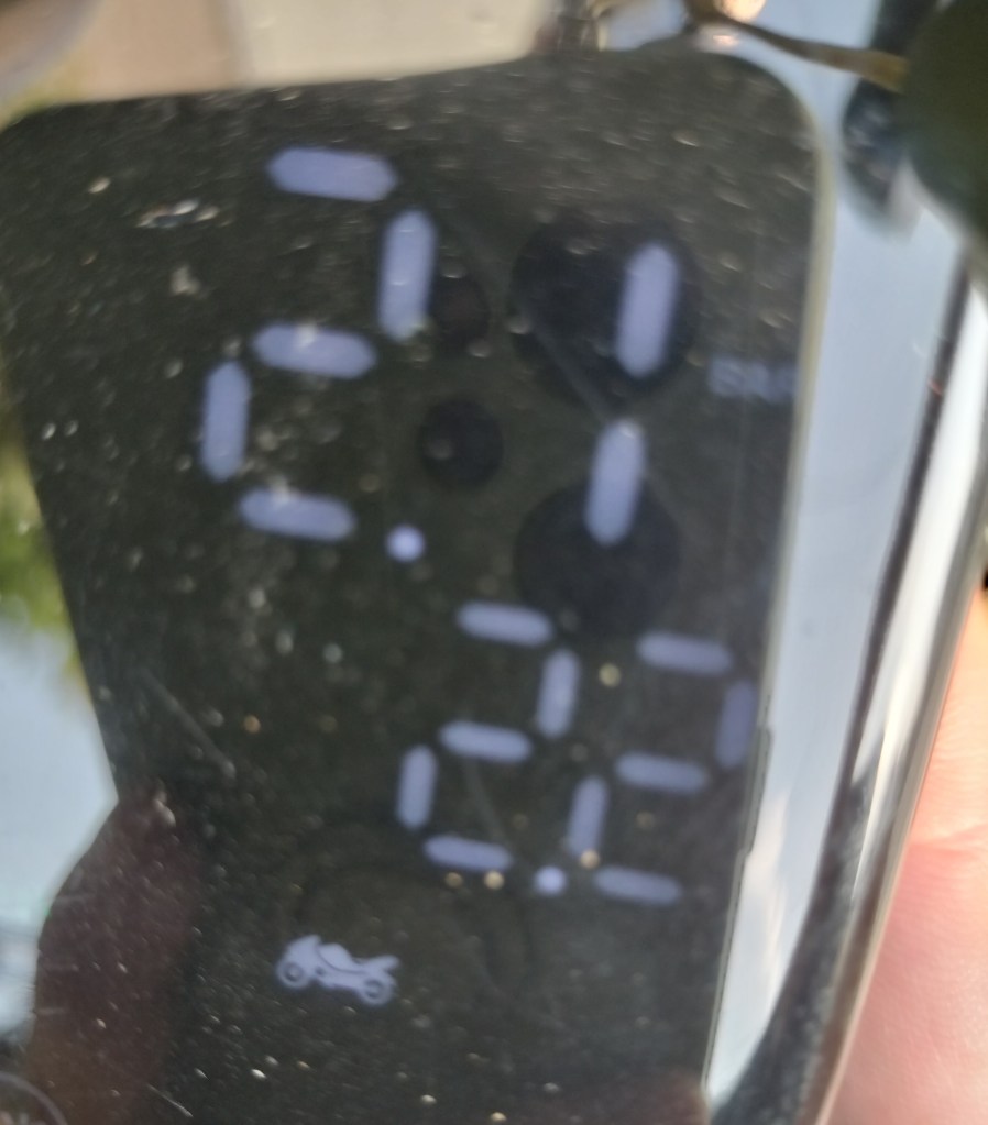 次にフロントタイヤの空気圧を測定しました。ポンプを繋いだときの数値は2.3Barでした。フロントの規定値は2.2Barですから、それより高い状態です。でもすぐに2.1Barまで下がっていきました。不思議です。ポンプのスイッチを押すと、2.2Barまでエアーを充填することができました。なにか不思議なことが起こっているようです。