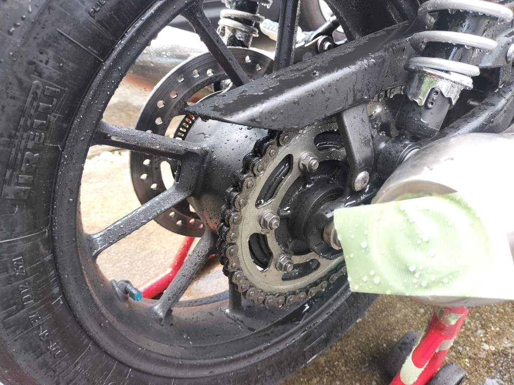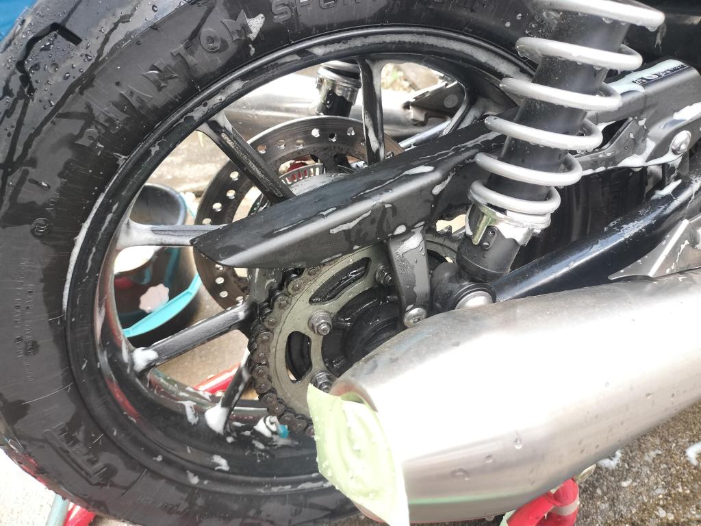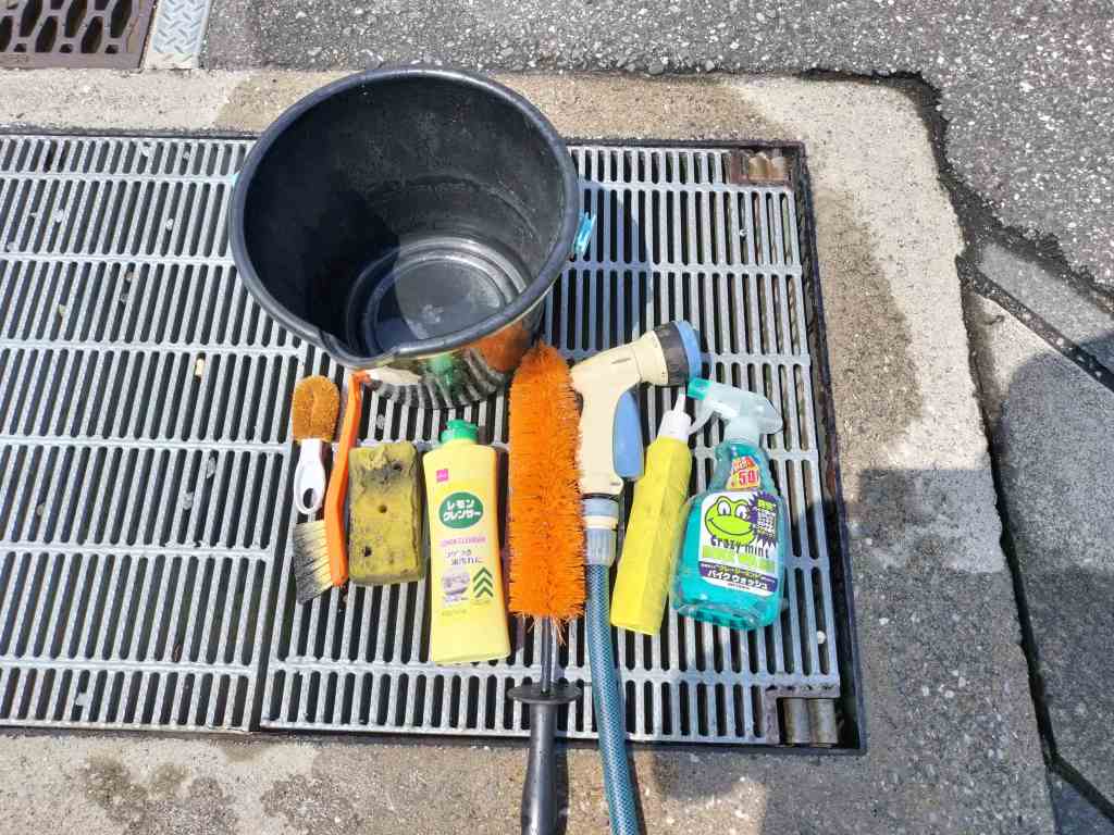 今回の洗車用具は上の画像の通りです。今回はカークリームを使ってみました。油汚れをよく落としてくれるみたいなので、次回も使おうと思います。さあ、次はチェーンメンテナンスです。