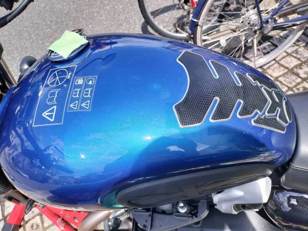 シャンプーで汚れを落とします。カエル印の洗剤は、タンクなどの軽度の汚れをキレイに落としてくれました。ただ、リヤホイールなどの油分には勝てないようです。マフラーは100円ショップのクリームクレンザーでキレイになりました。