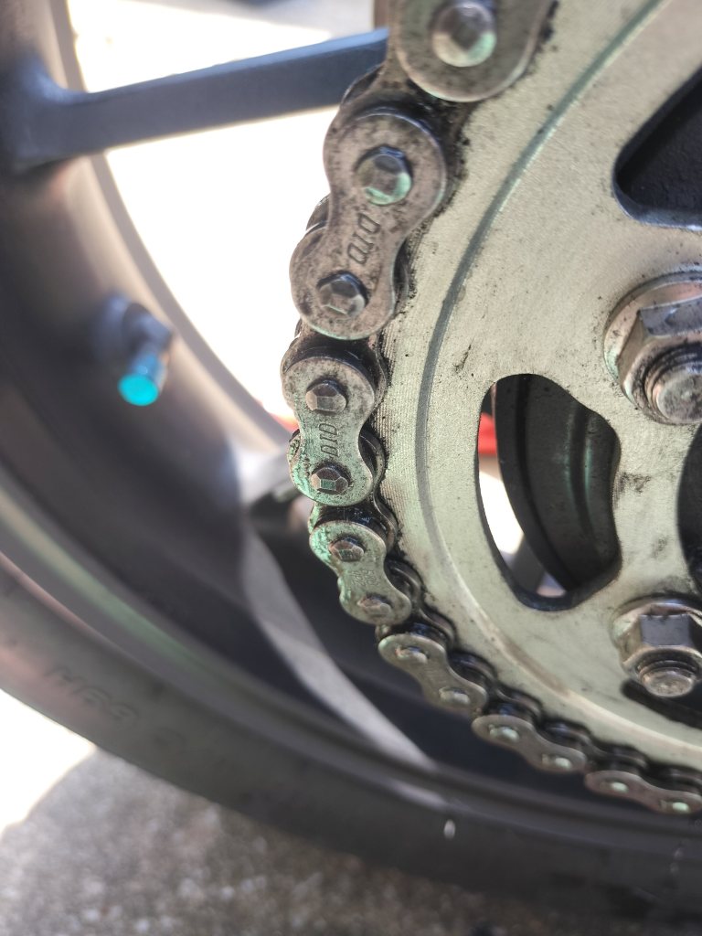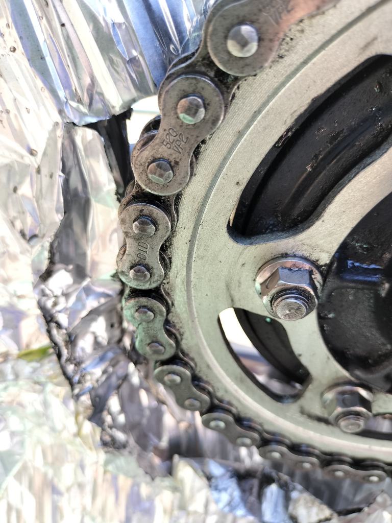 チェーンルブを吹付け、15分待ち、余分なルブを拭き取ります。これでチェーンメンテナンス完了です。