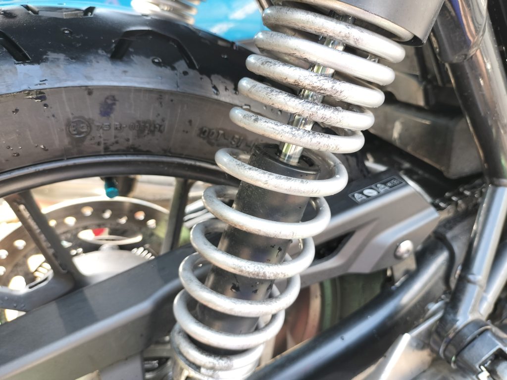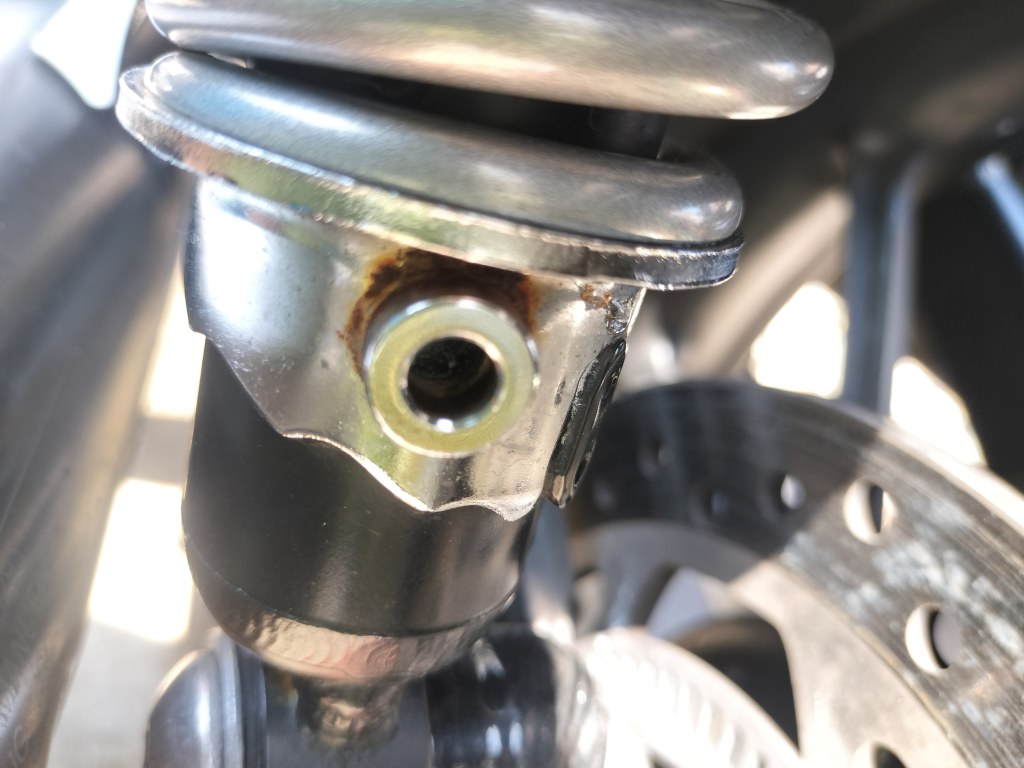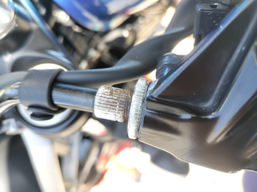 左側のダンパーにあるネジ付近の錆がまた大きくなってきたみたいです。そろそろ錆び落としをしなくてはならない感じです。フロントのクラッチワイヤーの根元は、変化がないようです。しばらく放っておけそうです。