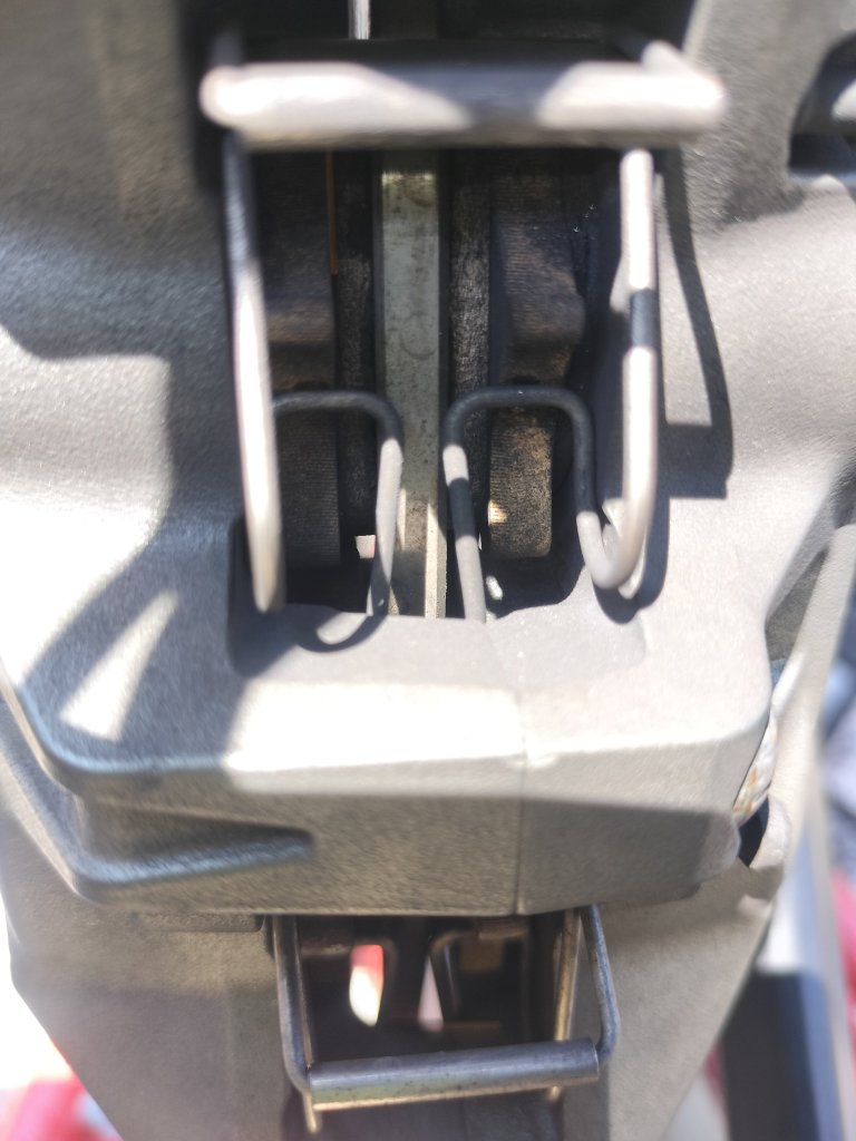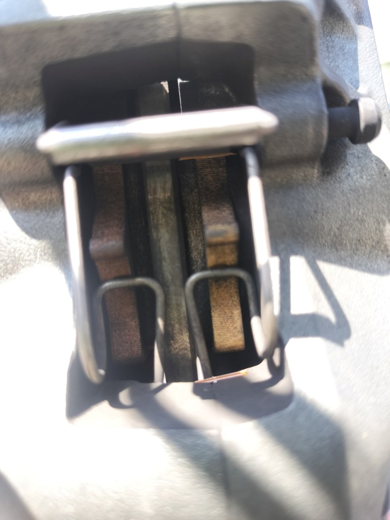 前回の点検から2,000㎞走りました。素人ですが、自分なりにStreet Twinの状態をチェックしたいと思います。いはODOMETERは約18,000㎞です。まずはブレーキパッドです。ODOMETERが12,000㎞のときに交換したので、6,000㎞ほど使用したことになります。前回の交換が12,000㎞使用した後だったので、ちょうど半分のところまで来た感じです。見た感じでは、まだまだパッドの残りはあるようです。私はリヤブレーキを多用するようなので、リヤのパッドの方が寿命が早く来るかもしれません。