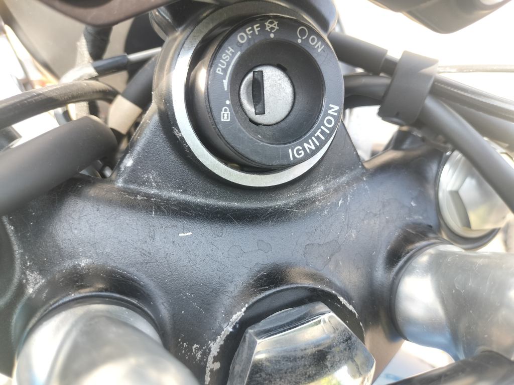 フロントの泥除けはプラスチック製っぽいのですが、傷をつけてしまったようです。目の細かいコンパウンドで磨けばいいのかもしれませんが、Keeperコーティングを剥がしてしまう気がするので、少し放置しようと思います。鍵穴周辺は細かい傷が増えました。走行中にエンジンキー以外の鍵が当たって傷ができるのでしょうか。塗装するなどしてきれいにしたいけど、外して作業をすることになるのかな…と思案中です。