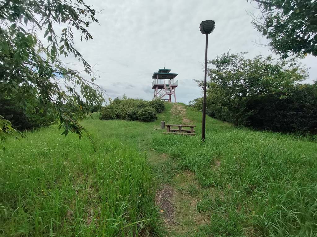 展望台へは少し歩きます。上ってみると、ベンチがあります。また、ベルがあって、 鳴らすことができます。展望台はきれいに整備されています。