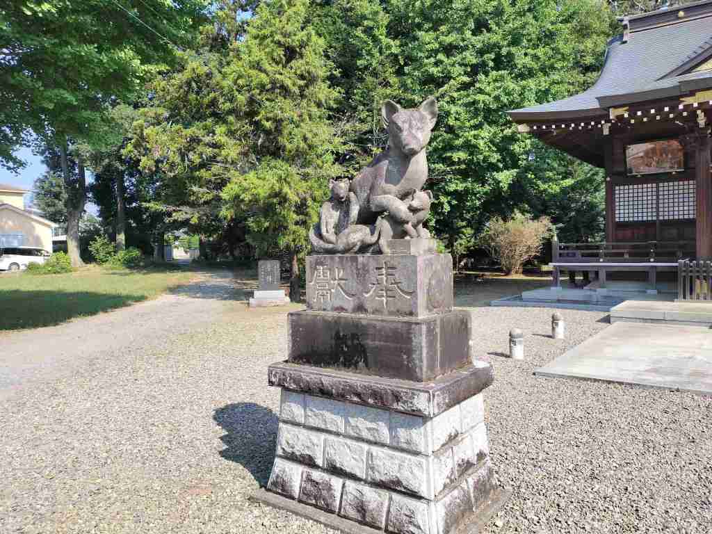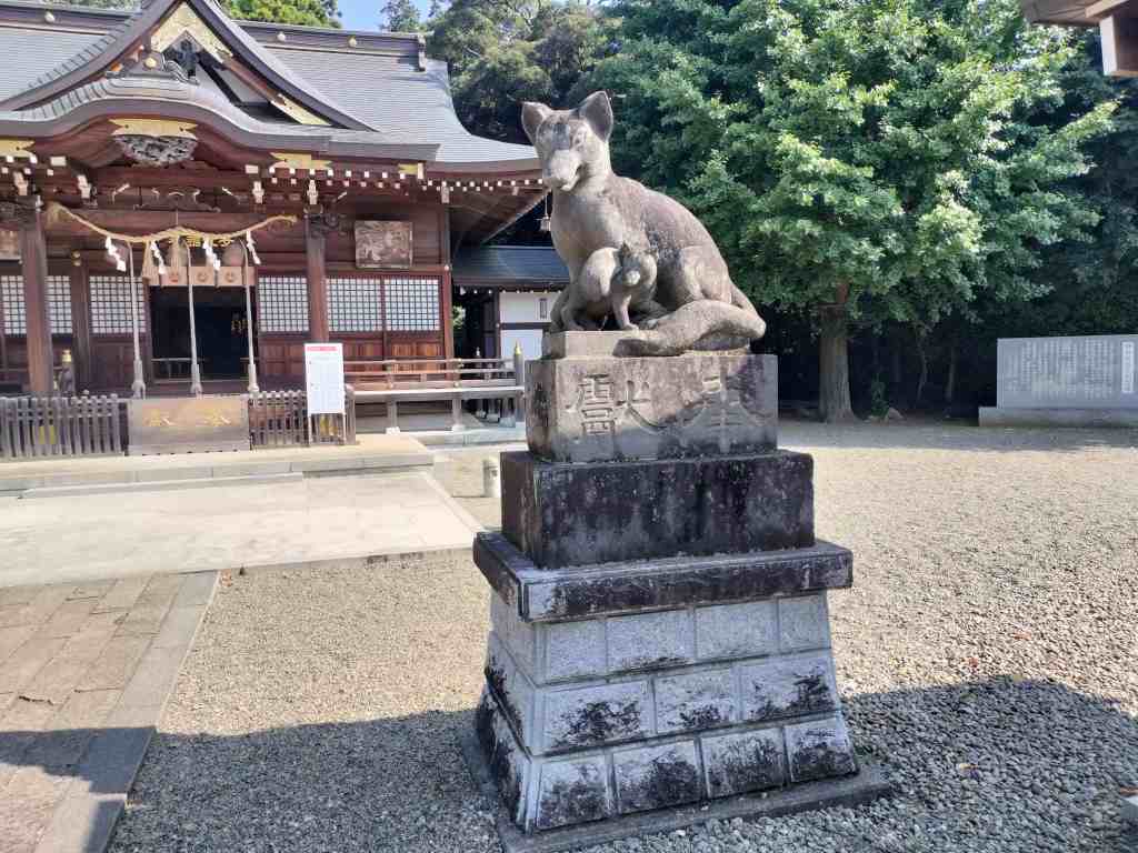 本堂の手前にはよく獅子が置かれているのですが、ここでは狐です。この神社にまつわる昔話として「キツネの恩返し」があるとのことです。そのためなのでしょうね。