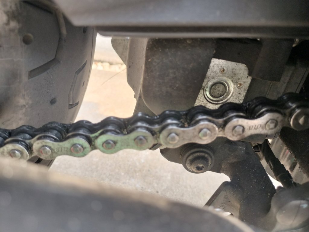 Street TwinのODOMETERが18,500㎞くらいになったので、チェーンメンテナンスを行いました。前回のチェーンメンテナンスから500㎞ほど走行しています。チェーンの汚れ具合は、これまでと同じ感じです。
