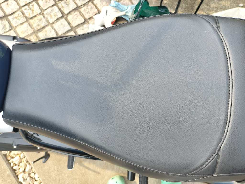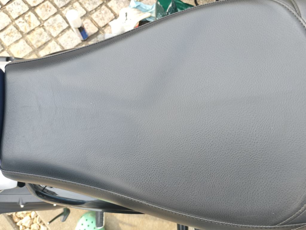 チェーンメンテナンス中、チェーンルブが浸透する15分の間にシートをクリーニングすることにしました。ぱっと見はあまり汚れているようには見えません。