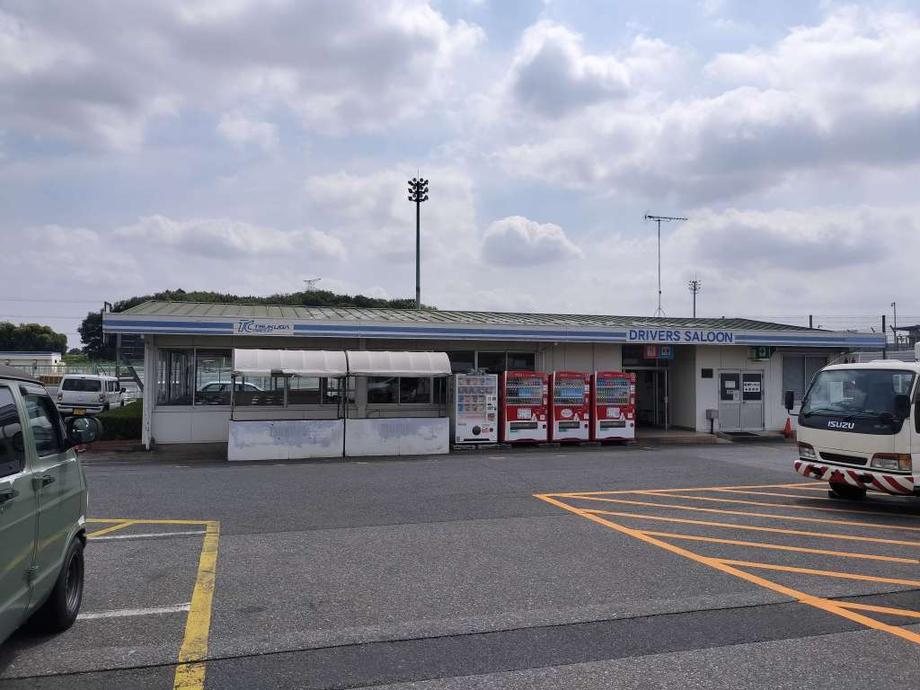 筑波サーキットにあるドライバーズサロンに行きました。食堂です。トイレの看板の存在感が高いですが、ここがドライバーズサロンの入口です。