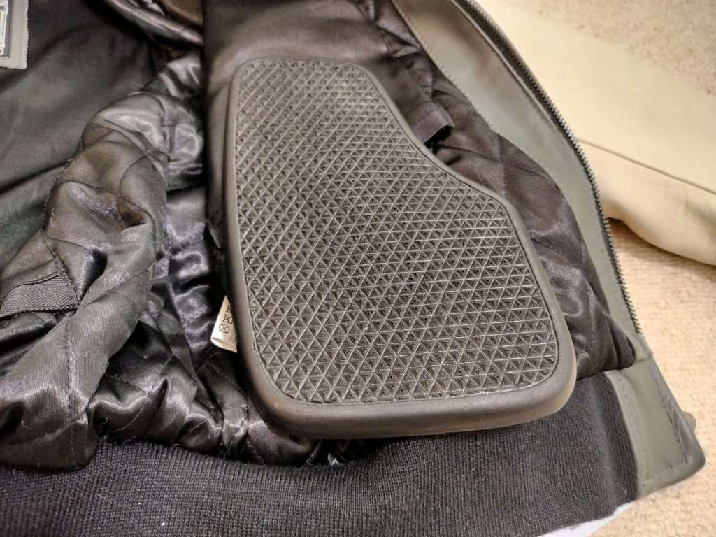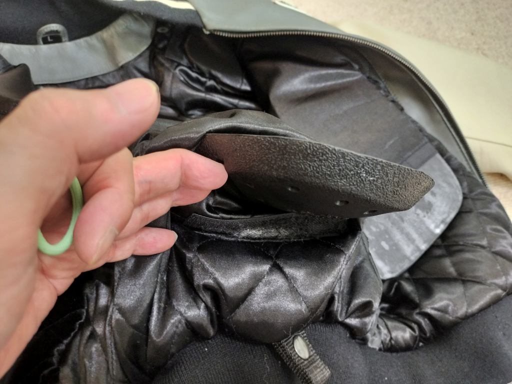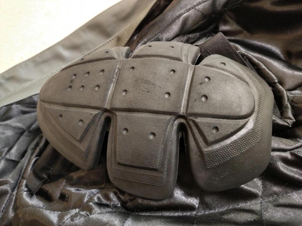 要所に頑丈そうなパッドが入っています。安心感が高そうです。これを購入したのは9月中旬だったので、まだまだ出番はありませんでした。いま10月中旬ですが、だいぶ気温が下がってきました。もう少しするとこのジャケットにちょうどよい気温になりそうなので、とても楽しみです。