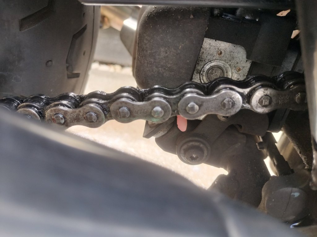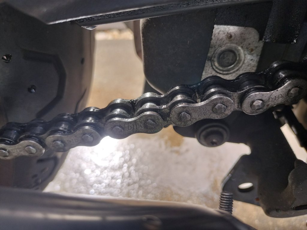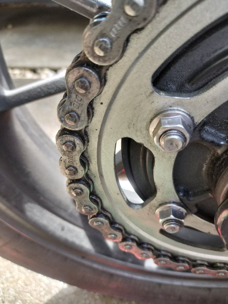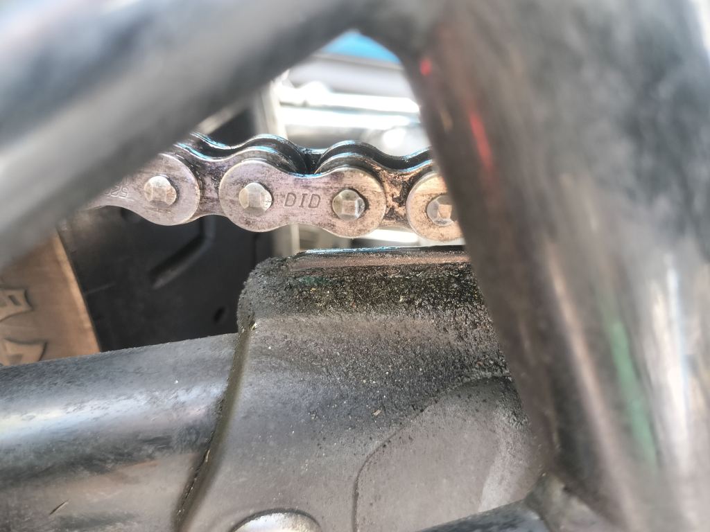 いつものように、チェーンクリーナーを吹付け、ブラシで軽く汚れを掻き出し、ウエスでチェーンクリーナーを拭き取りました。でも、画像の撮影を失念してしまったので、画像はメンテナンス後のものです。
