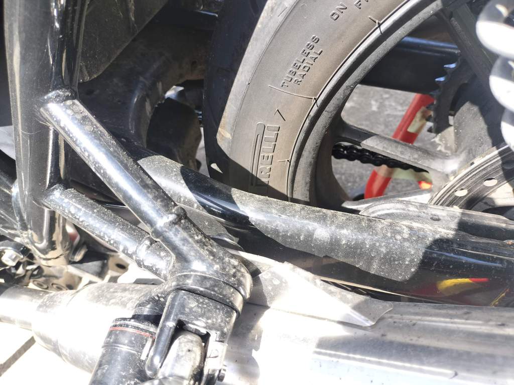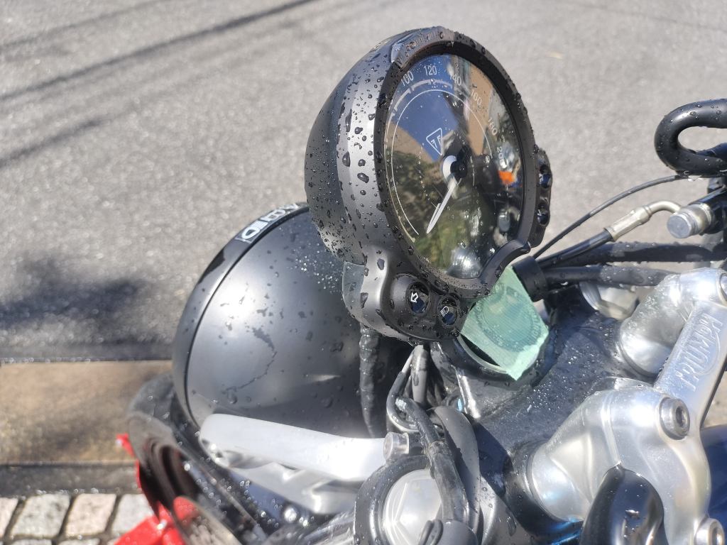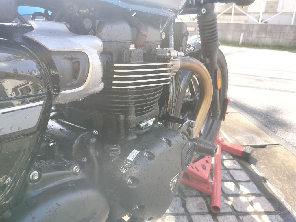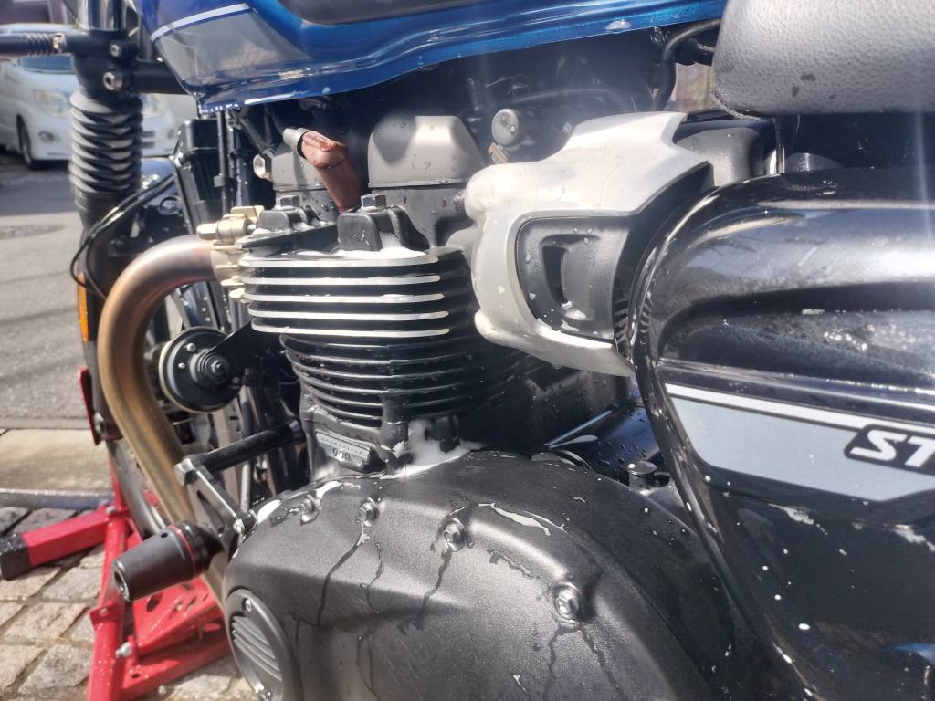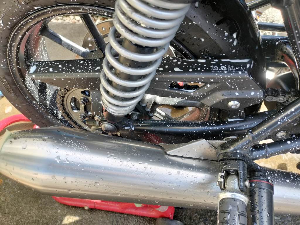 Street Twinと泊りでツーリングへ行ったり、道中で雨に降られたりしたので、洗車をすることにしました。車体を確認すると、いつも以上に汚れている感じはしないものの、リヤのチェーン付近はいつも通り汚れていました。