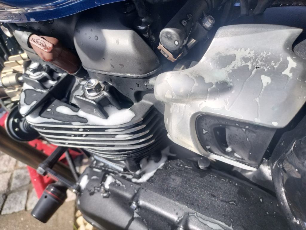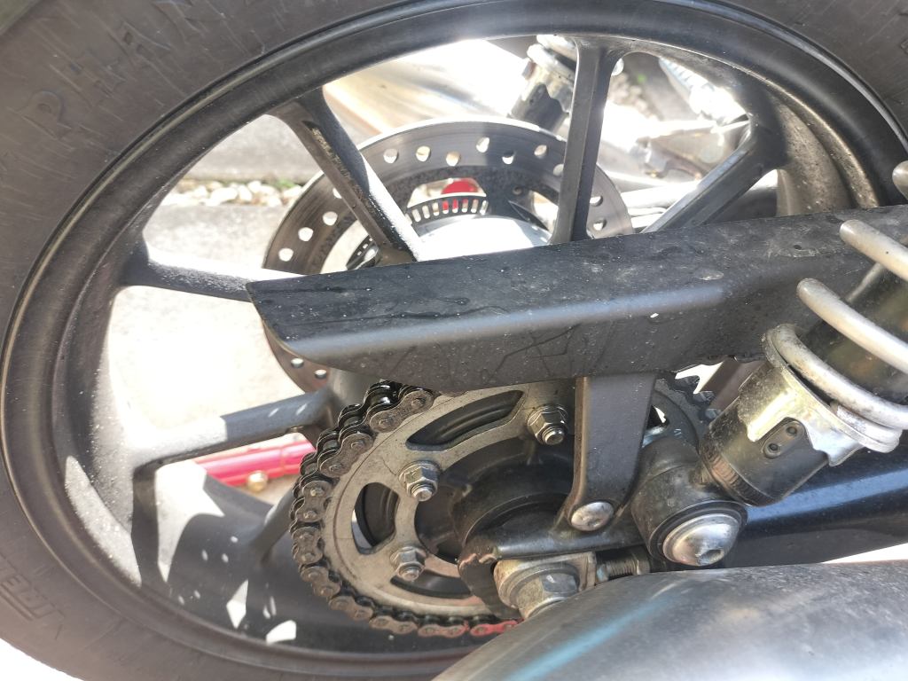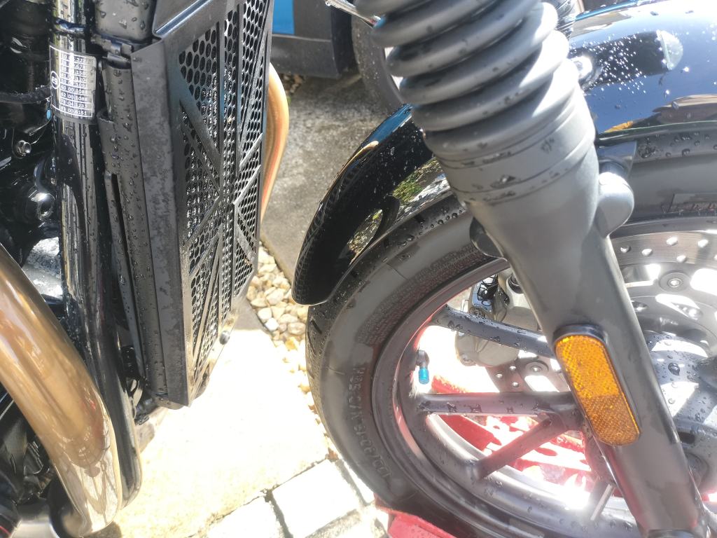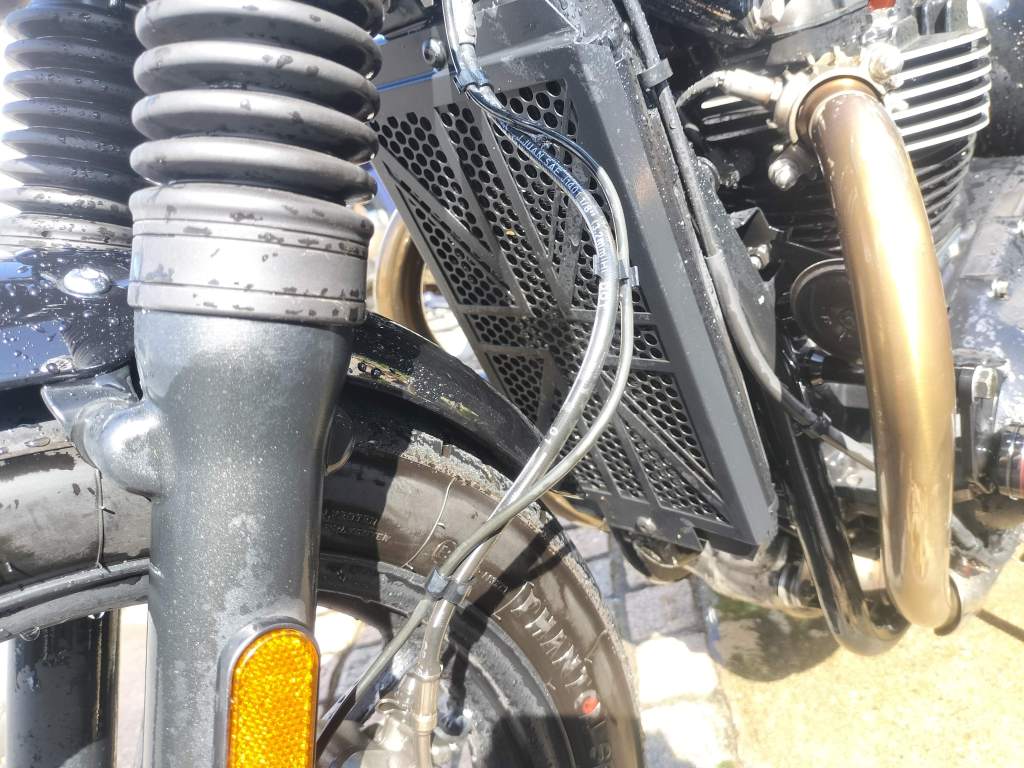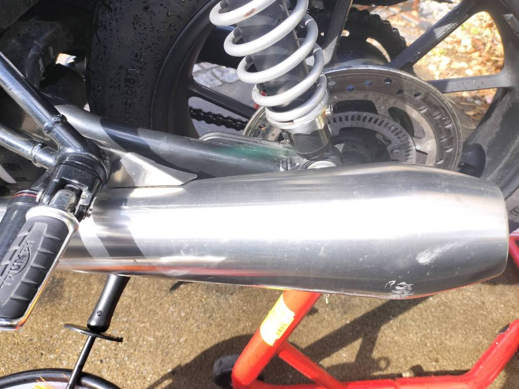Street Twinと泊りでツーリングへ行ったり、道中で雨に降られたりしたので、洗車をすることにしました。車体を確認すると、いつも以上に汚れている感じはしないものの、リヤのチェーン付近はいつも通り汚れていました。