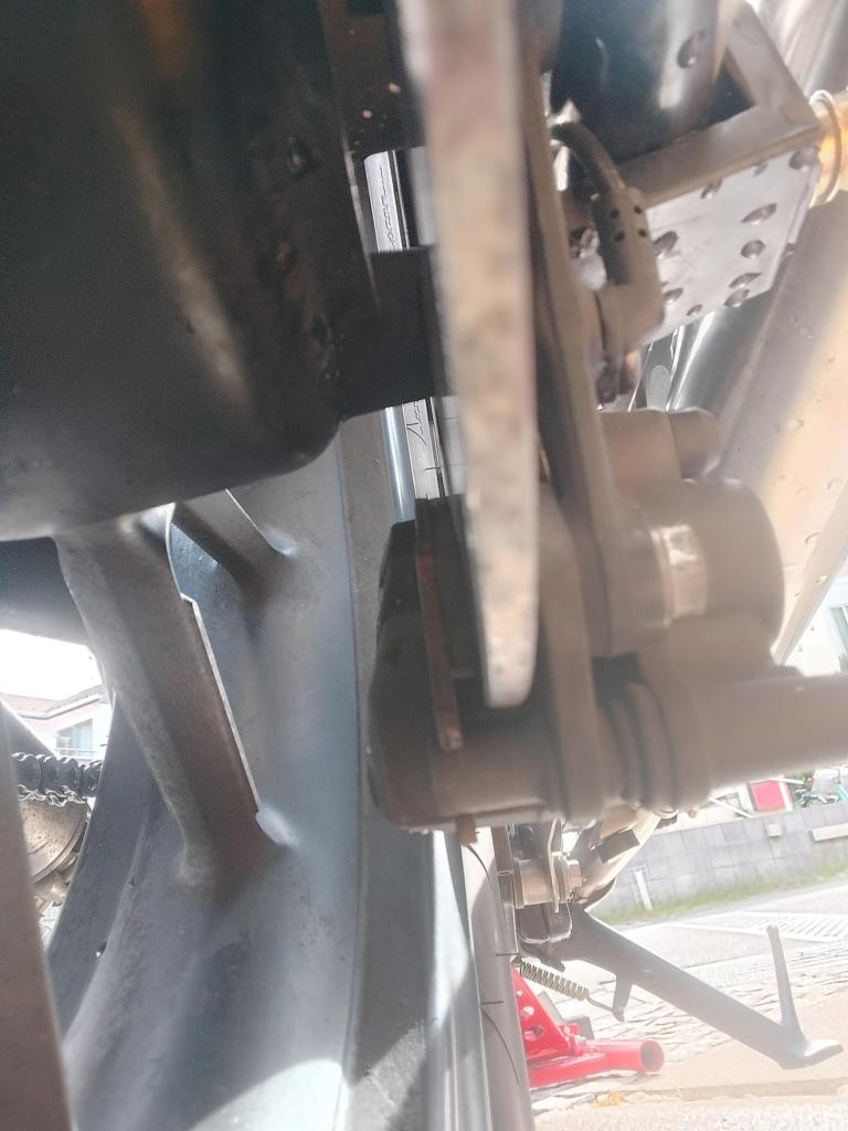次はリヤのブレーキパッドです。私はリヤブレーキを多用している方らしいのですが、パッドの残はまだまだありそうです。こちらも10,000㎞くらいは余裕をもって使用できそうです。