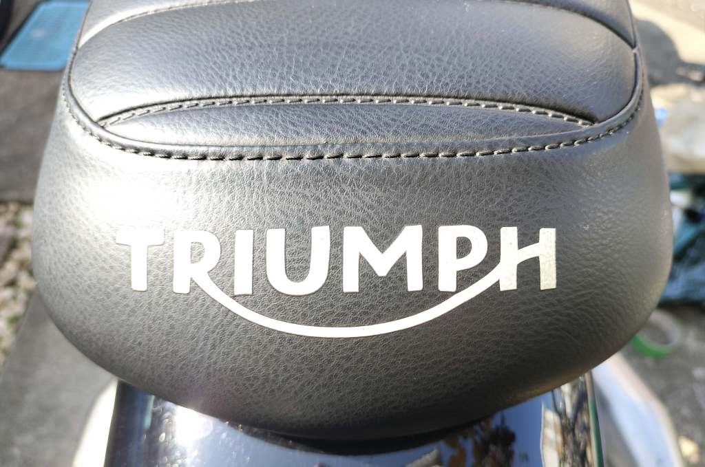 Street Twinのシートを清掃しました。長野県まで雨中走ったりしたので、それなりに汚れています。一番わかりやすかったのは、シート後部のTRIUMPHの文字です。下半分が黄色くなってきていました。水垢でしょうか。どんな成分に由来した汚れなのかは、私には分かりません。