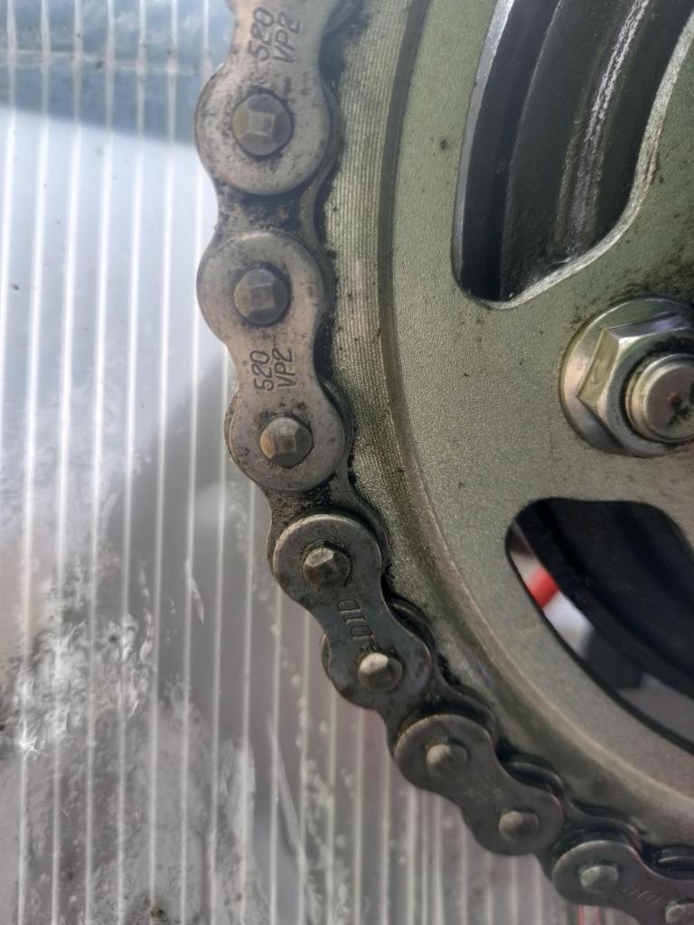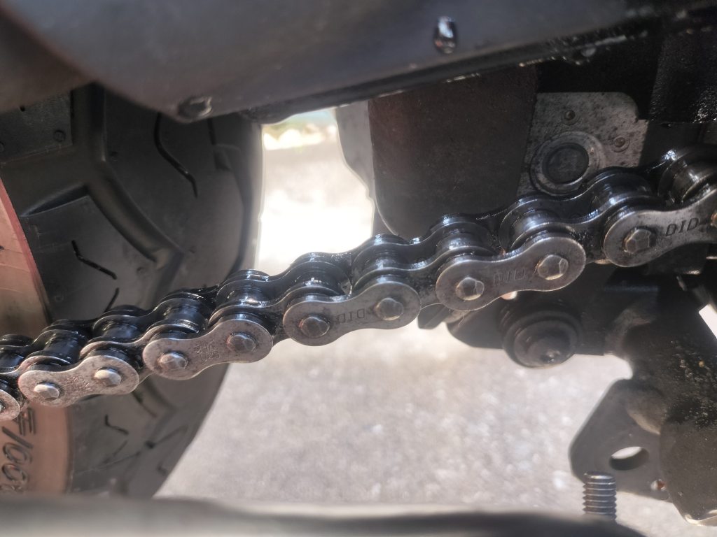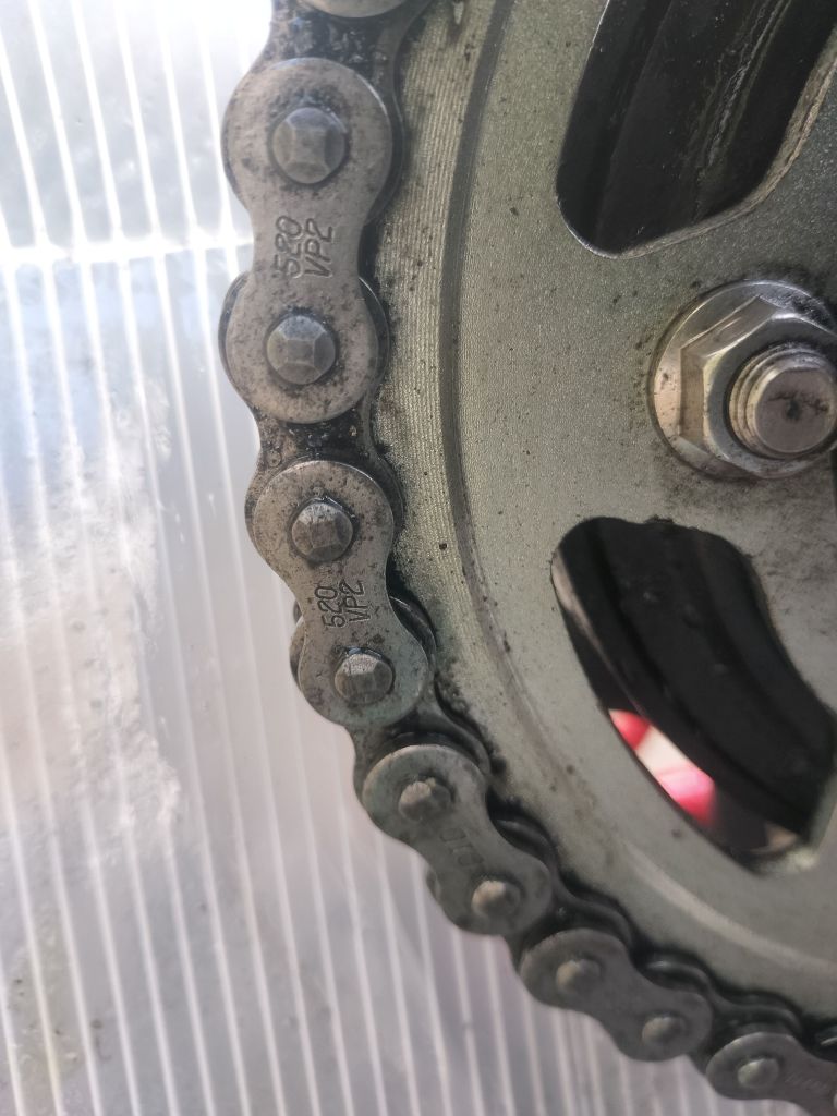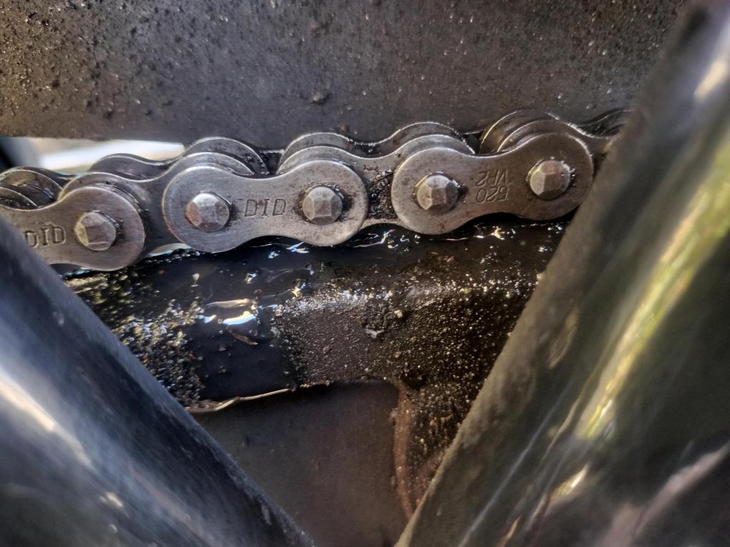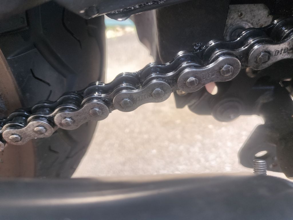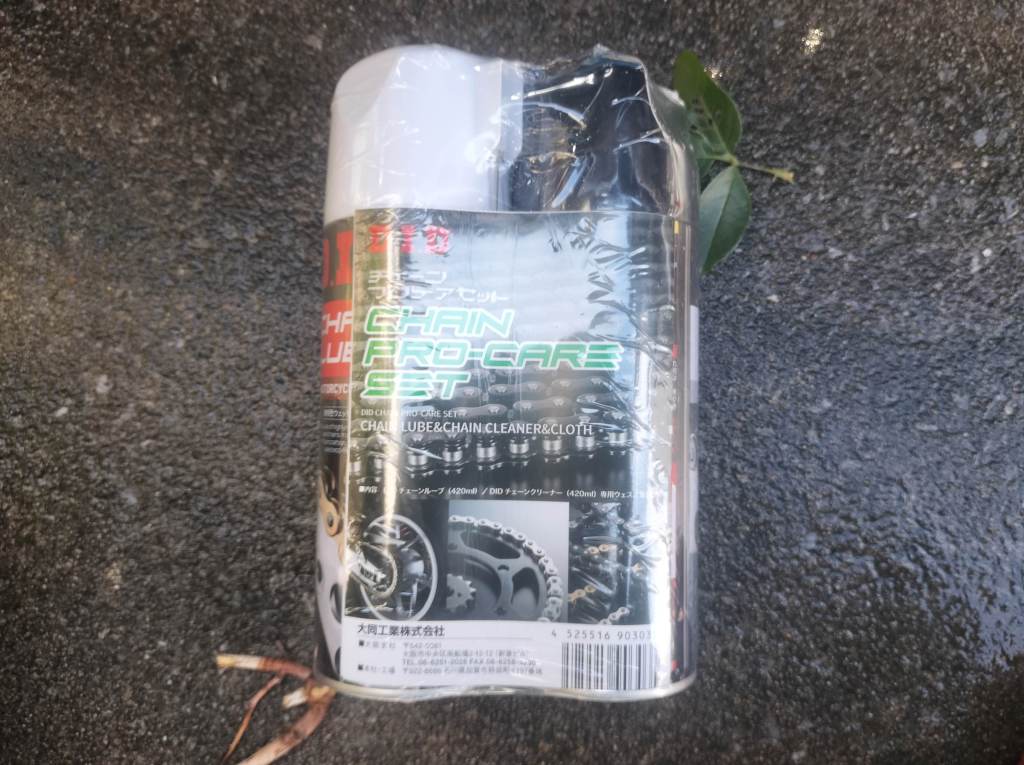 チェーンルブもYAMALUBEのものを使い終わってしまったので、DIDのものを使用しました。YAMALUBEのウェットタイプと比較すると、サラサラしたものでした。YAMALUBEのように15分ほど待つ必要はなさそうだったので、5分程度待ってからチェーンルブを拭き取りました。
