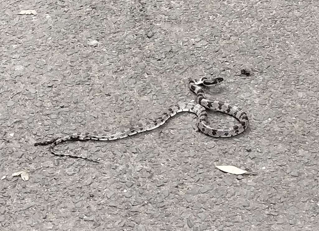 八龍神社です。境内は大きくなさそうですが、どなたかが定期的に整備されているようです。お参りさせて頂き、交通安全などを祈願させて頂きました。バイクに戻ると、なにやらひも状のものが目に入ったので、よく見ると蛇さんでした。お出迎えして頂いたようで、恐縮です。