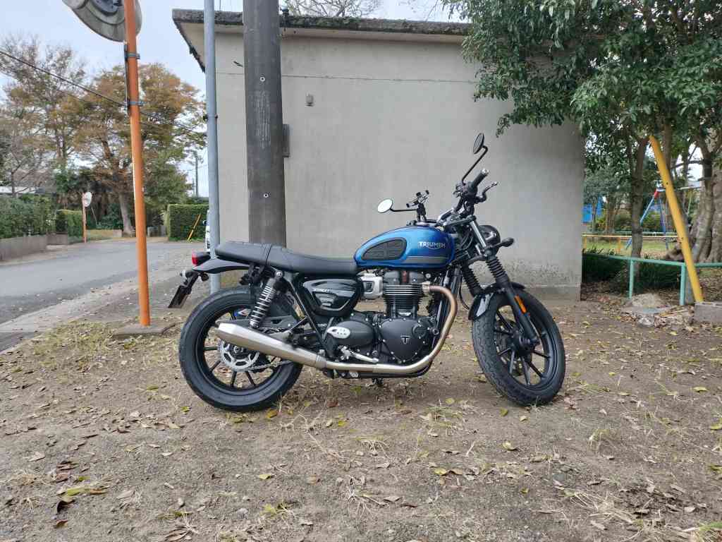 もうひとつの八龍神社へ向かいました。Google Mapのナビを使ったのですが、目的地が目視で確認できません。そこで公園の駐車場にStreet Twinを停め、歩いてみることにしました。