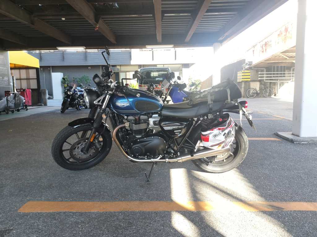 近所をプチツーしようかな…と思い、Street Twinと家を出たのですが、しばらくすると、シフトチェンジをしようにもシフトペグの感触が足から消えました。あれれ?と思って足元を見ると、シフトペグがありません。落としたかもしれない場所を少し探しましたが、見つかりません。仕方がないので、足をシフトアームに引っ掛けながらシフトチェンジをし、赤男爵へ駆け込みました。事情を説明すると、メカニックの方があっという間にボルトを使って応急処置をしてくれました。さすがです。