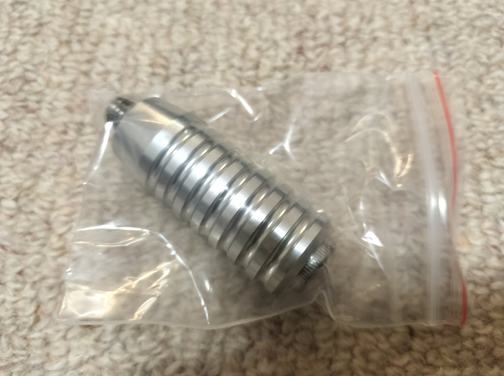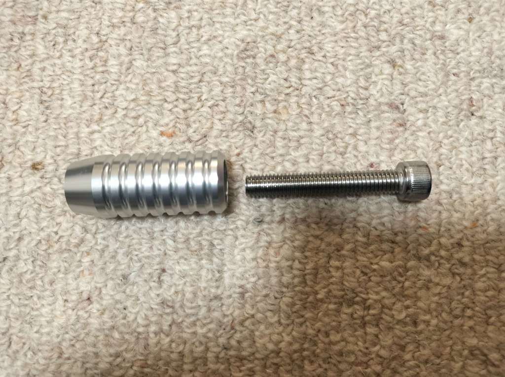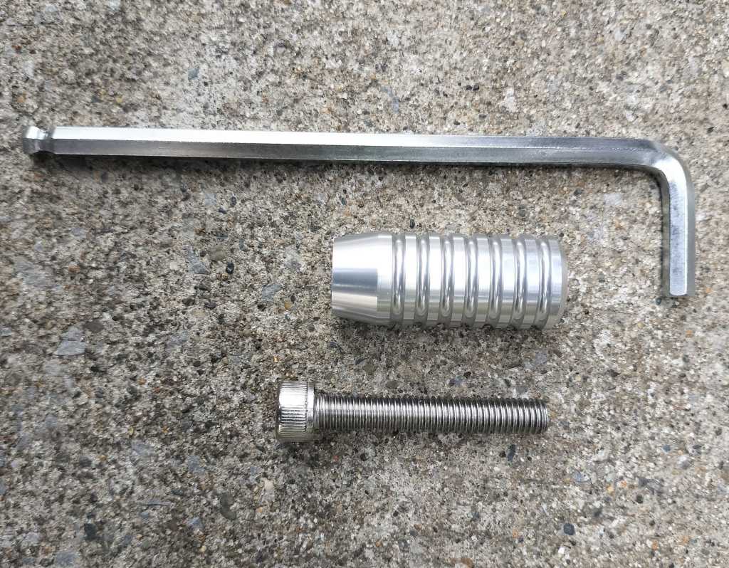 赤男爵さんで純正品の在庫を確認して頂いたのですが、納期不明とのことだったので、純正以外も検討することにしました。結果、Motone社製のものにしました。ポチったら、すぐに届きました。金色も考えたのですが、銀色にしました。落ち着いた感じの色ですね。