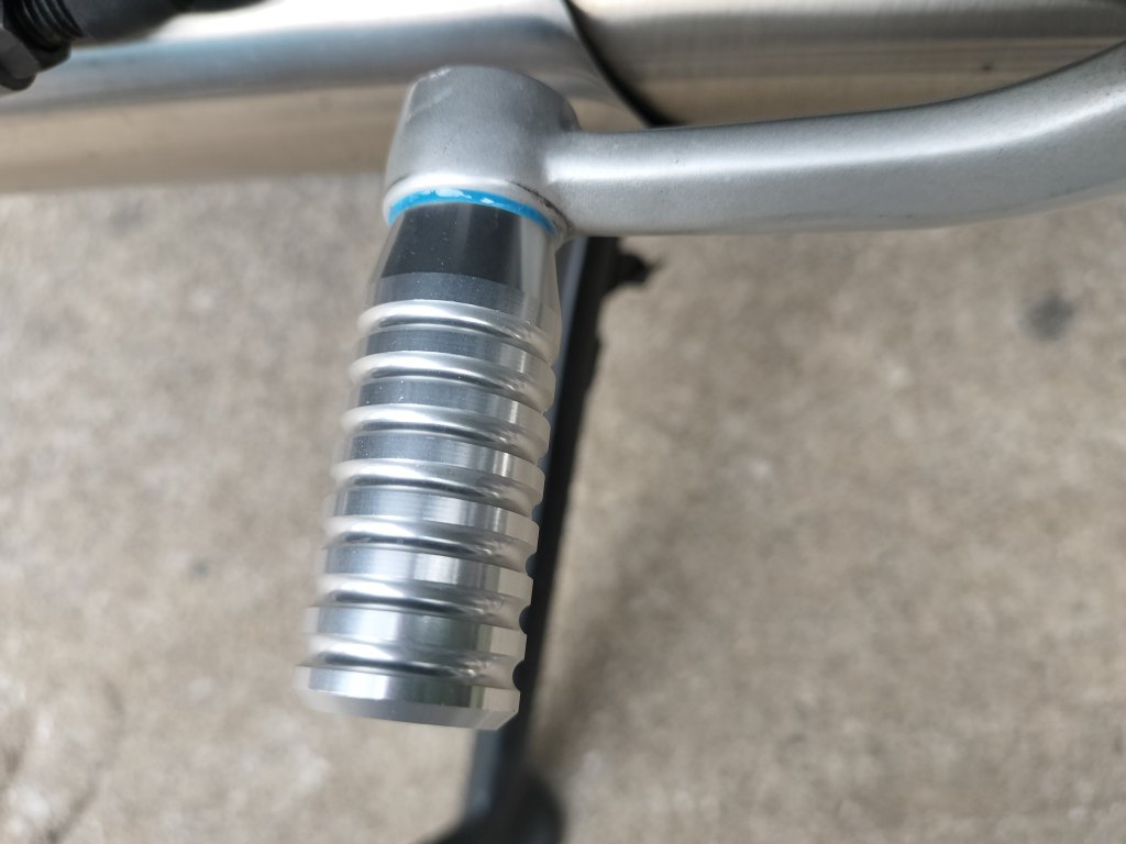 早速取り付けました。必要なのは六角レンチだけです。脱落防止のため、ねじ止め剤を塗ってから締めました。少しはみ出た感じですが、ご愛敬ということで…。装着後、Street Twinに跨ってギヤチェンジをカチャカチャやってみましたが、動作ばっちりでした。見た目もばっちりです。後日、使ってみた感じも良好でした。Street Twinがちょっとカッコよくなったように思います。