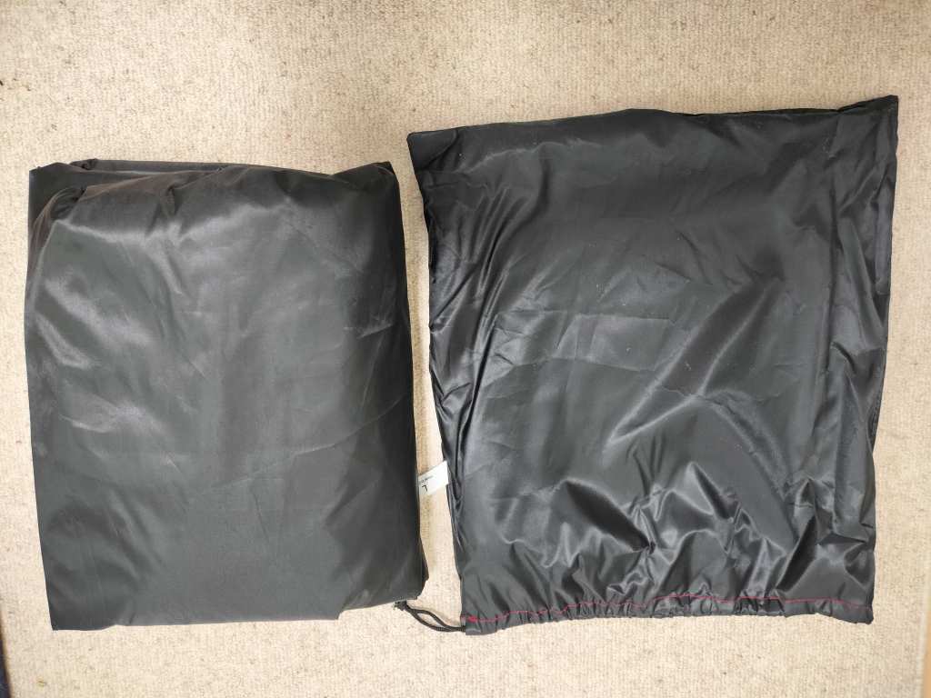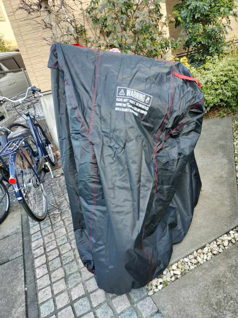 いままでずっとYAMALUBE製のバイクカバーを使ってきましたが、そろそろ別のものを使いたくなってきました。ネットで探した結果、Kaedear製のものを買ってみることにしました。値段はYAMALUBE製のものより若干低めになっています。Amazonで購入したのですが、届いてみるとカバーは袋に入っていました。