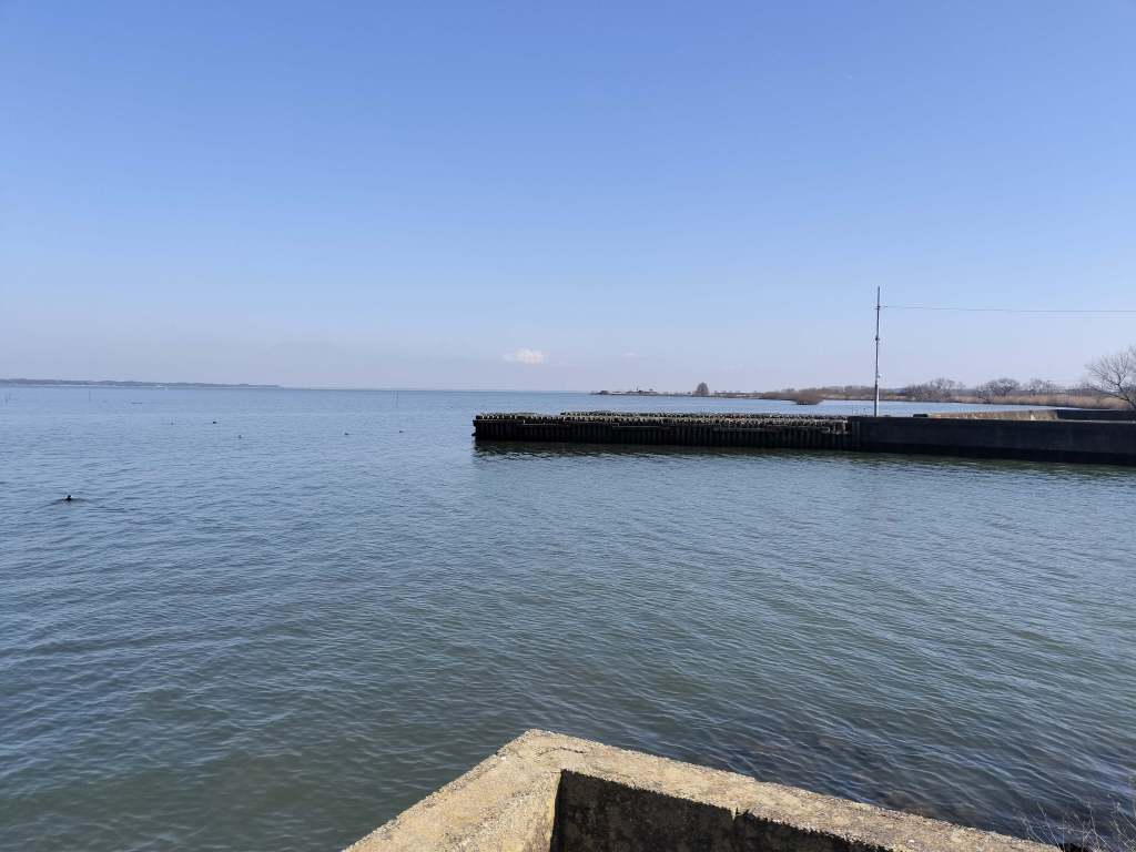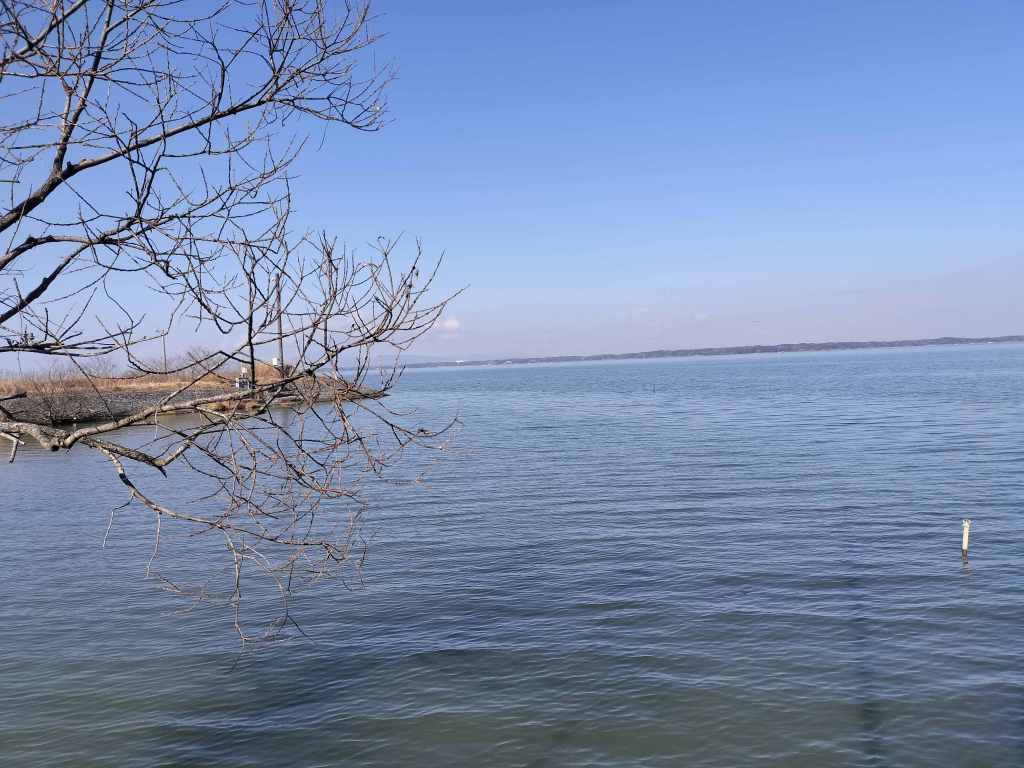 水神宮様にお参りをし、裏側にまわってみました。この日は風のない穏やかな日だったので、水面が穏やかです。風もないので気持ちよく、霞ヶ浦を眺めることができました。霞ヶ浦は水面に近いところをバイクで走ることができます。気持ちよかったので、次の目的地に向かうことにしました。