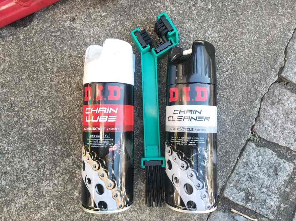 今回もDID社のチェーンクリーナーとチェーンルブを使いました。まだまだ残量がありそうです。チェーンのメンテナンスが終わったので、ツーリングが楽しみです。