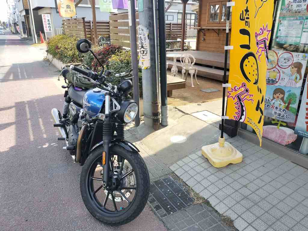 Street Twinとコロッケを買いに行きました。茨城県龍ヶ崎市はコロッケで町興しをしているようです。「コロッケクラブ龍ヶ崎」という集まりがあり、今回訪問した精肉店も参加しているようです。ツーリングがてらコロッケを買い、週末の昼食にすることにしました。