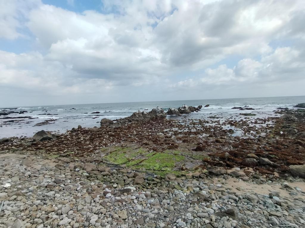 この大ちゃん通りに沿った海岸線には、白亜紀の地層が表出しているようです。岩がゴツゴツしています。場所によっては大きなレンズのカメラを抱えた撮影者もいました。