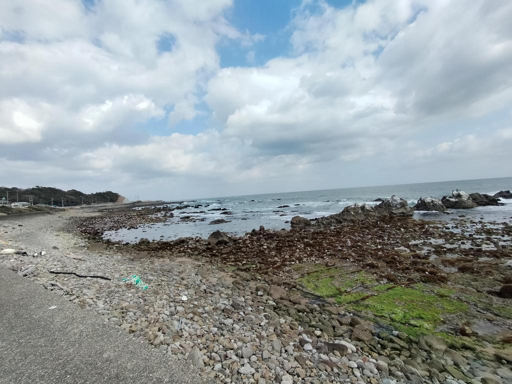 大ちゃん通りから海を眺めると、大きな岩をたくさんみることができます。アンモナイトの化石が出てきたこともあるようです。海岸の場所によっては磯遊びができるようなので、化石探しをしてみるのも楽しいかもしれませんね。