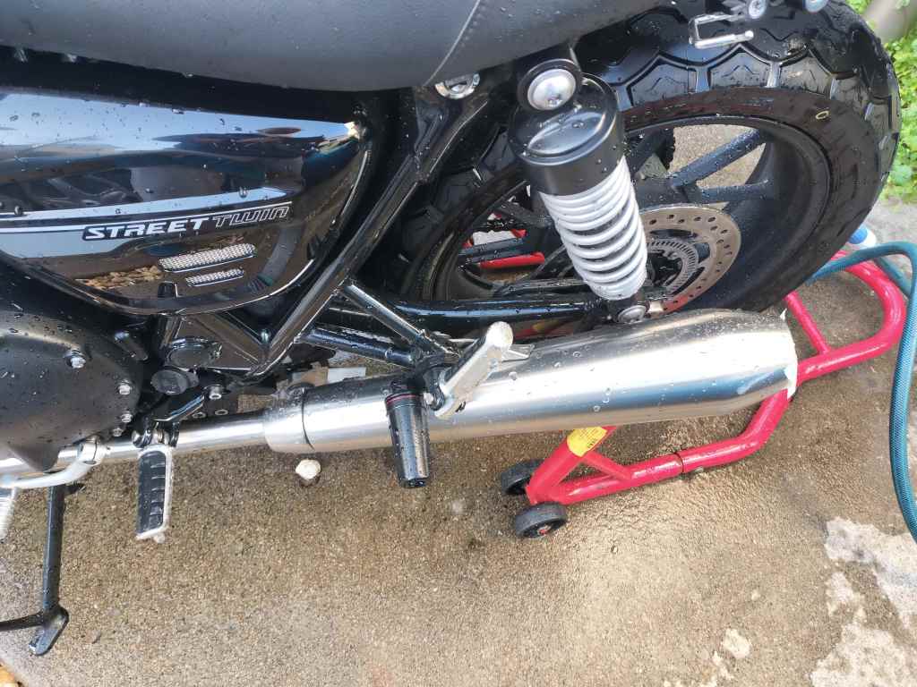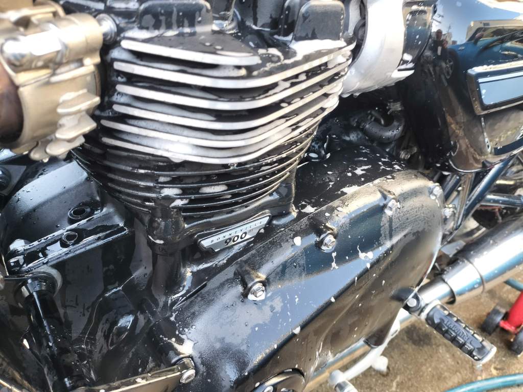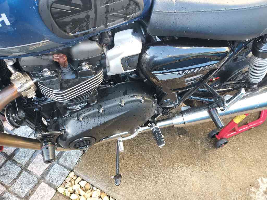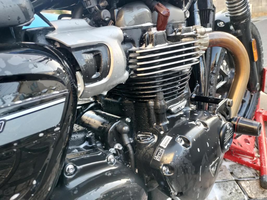 前回の洗車から約1,000㎞走行したので、Street Twinを洗車することにしました。洗車前に軽く目視すると、あまり汚れている感じはありませんでした。でも、さらに1,000㎞伸ばすのも先が長く思えたので、洗車をすることにしました。
