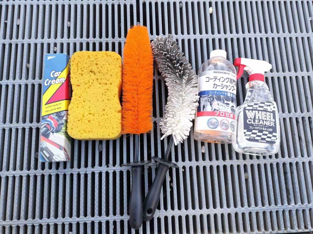 今回の洗車用具です。Keeperコーティング用のシャンプーは、あと1回分くらいありそうです。その他はまだまだたくさん残っています。さあ、次はチェーンメンテナンスです。